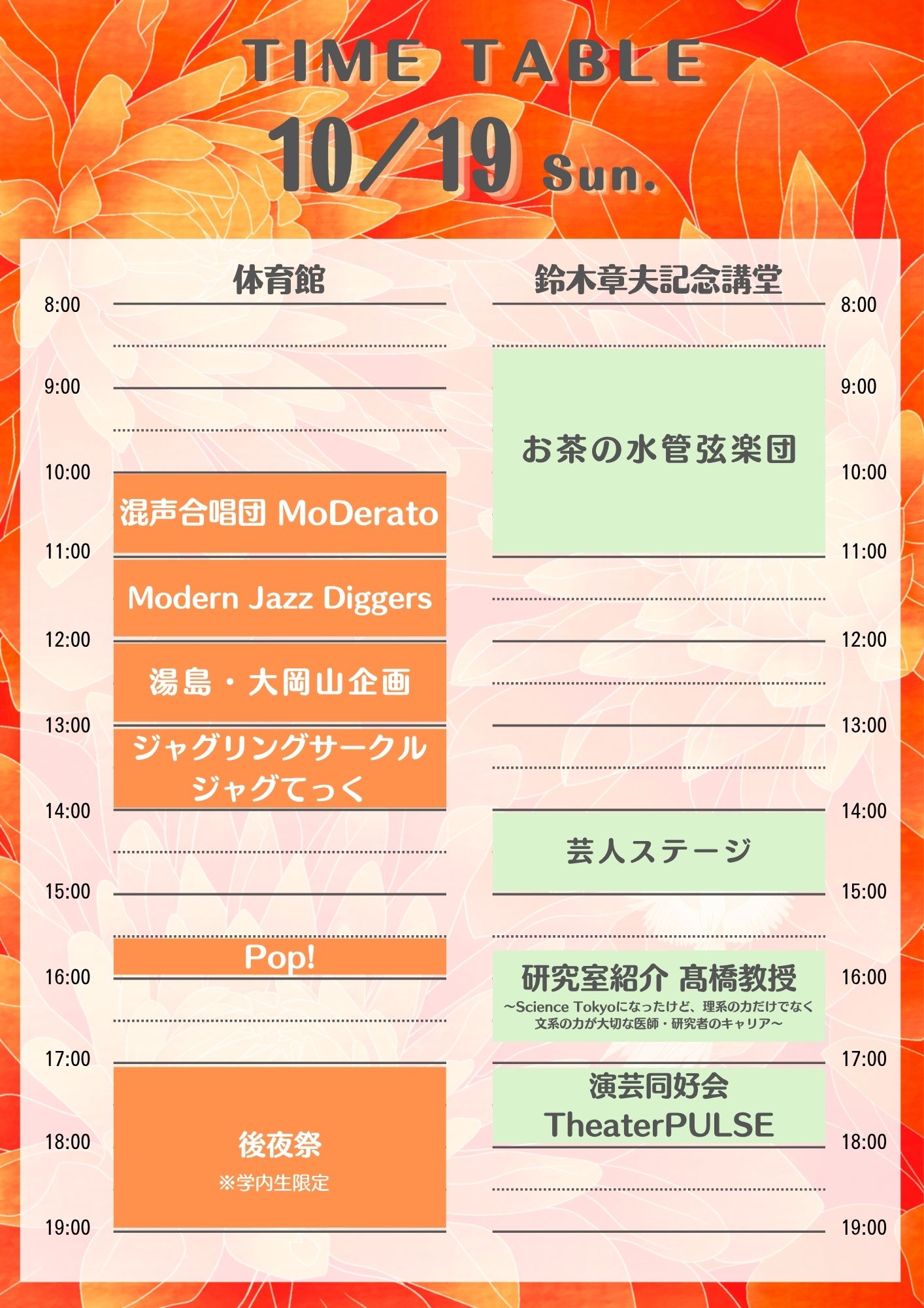 | 18:00〜20:00 | 中夜祭 ※Science Tokyo生限定 |